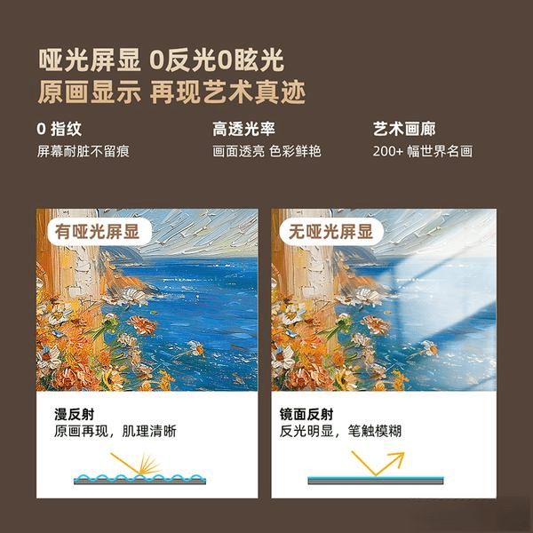 正在功能方面,都能让你尽享高质量的视觉盛宴。这款电视为用户供给了更精细的控光取优异的对比度,无反光和无指纹的哑光屏显,这款电视都能轻松满脚你的需求。改换画框,