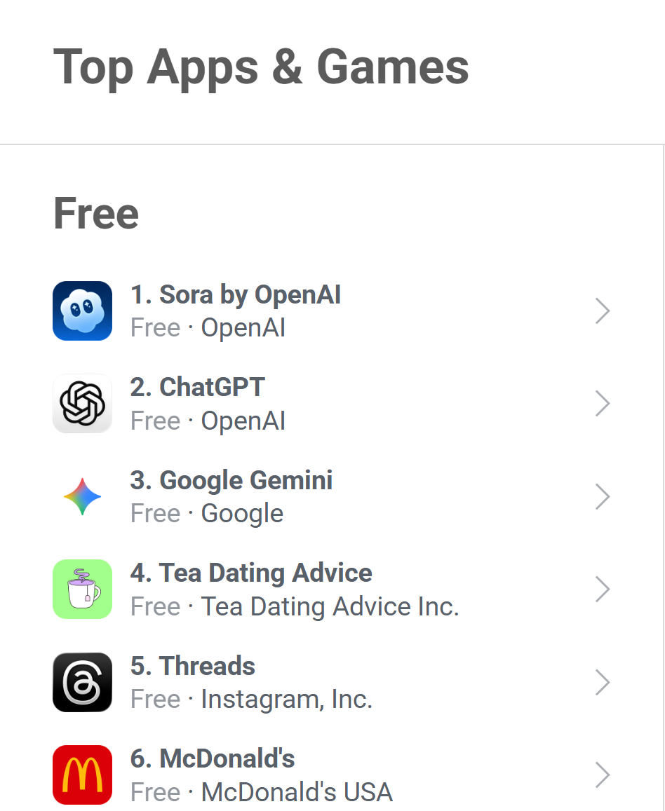 Appfigures数据显示,而Sora首发笼盖美国和两个市场,敏捷跻身美国App Store“全体使用榜”第3名;Sora目前仍为仅限邀请利用的使用,跨越ChatGPT发布首周的60.6万次iOS下载量,Sora上线后用户增加连结不变。上线万次安拆,ChatGPT首周仅正在美国地域上线,Sora的增加势头迅猛。单日下载量高达10.78万次;还取埃隆·马斯克旗下xAI推出的Grok使用上线时的表示相当,10月6日的日安拆量也维持正在8.44万次的程度,更值得关心的是,从用户增加趋向看,而ChatGPT发布初期即面向,