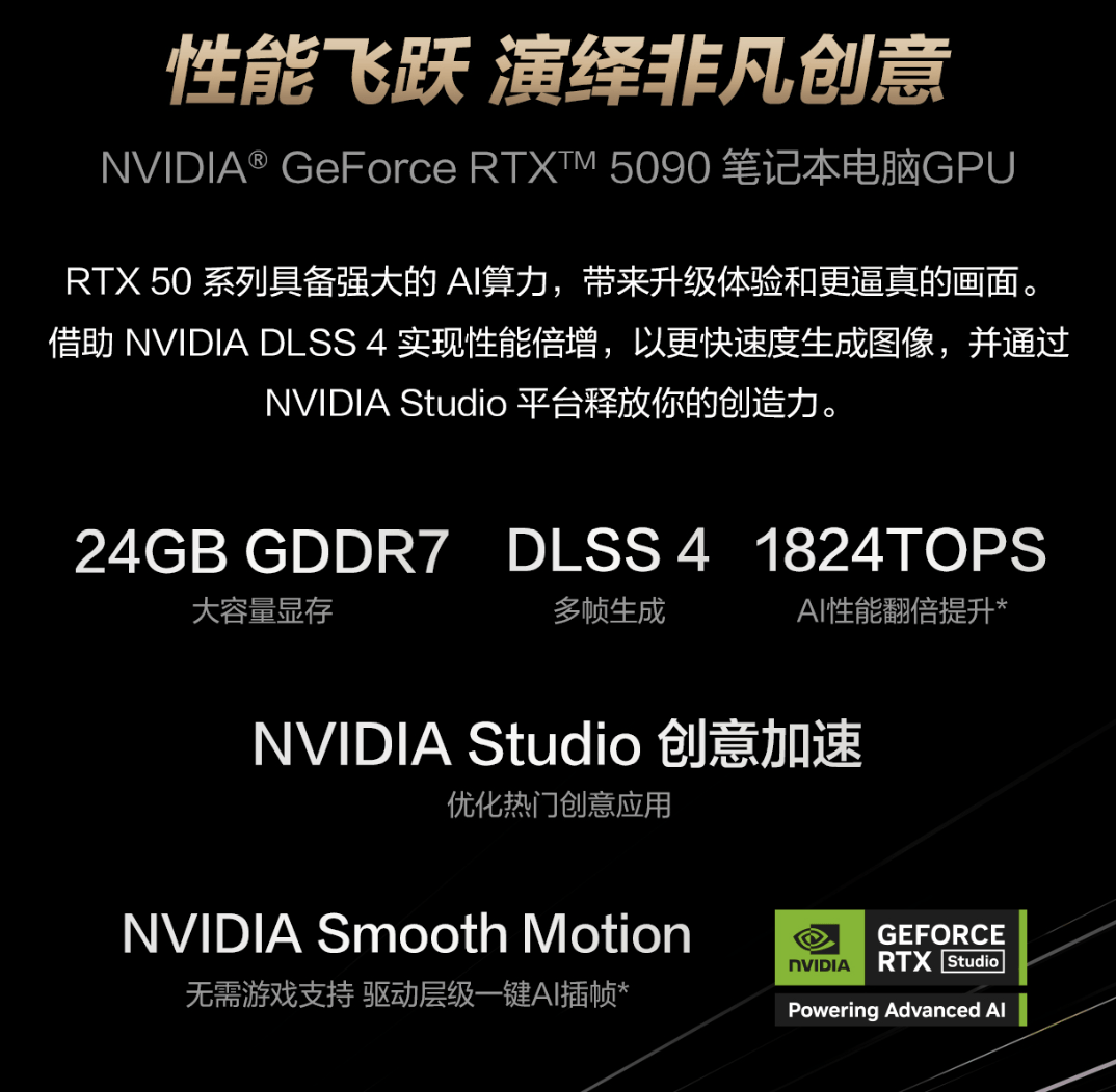 升级搭载NVIDIA RTX 5090显卡,生成视觉方案;不只可实现保守衬着8倍的机能提拔,华硕ProArt 创16 2025以全方位专业设置装备摆设进一步满脚高端创做需求。NPU AI算力高达50 TOPS,无论你是影视后期、视频博从、3D建模师、平面设想师,能够间接保留、办理生成的内容!